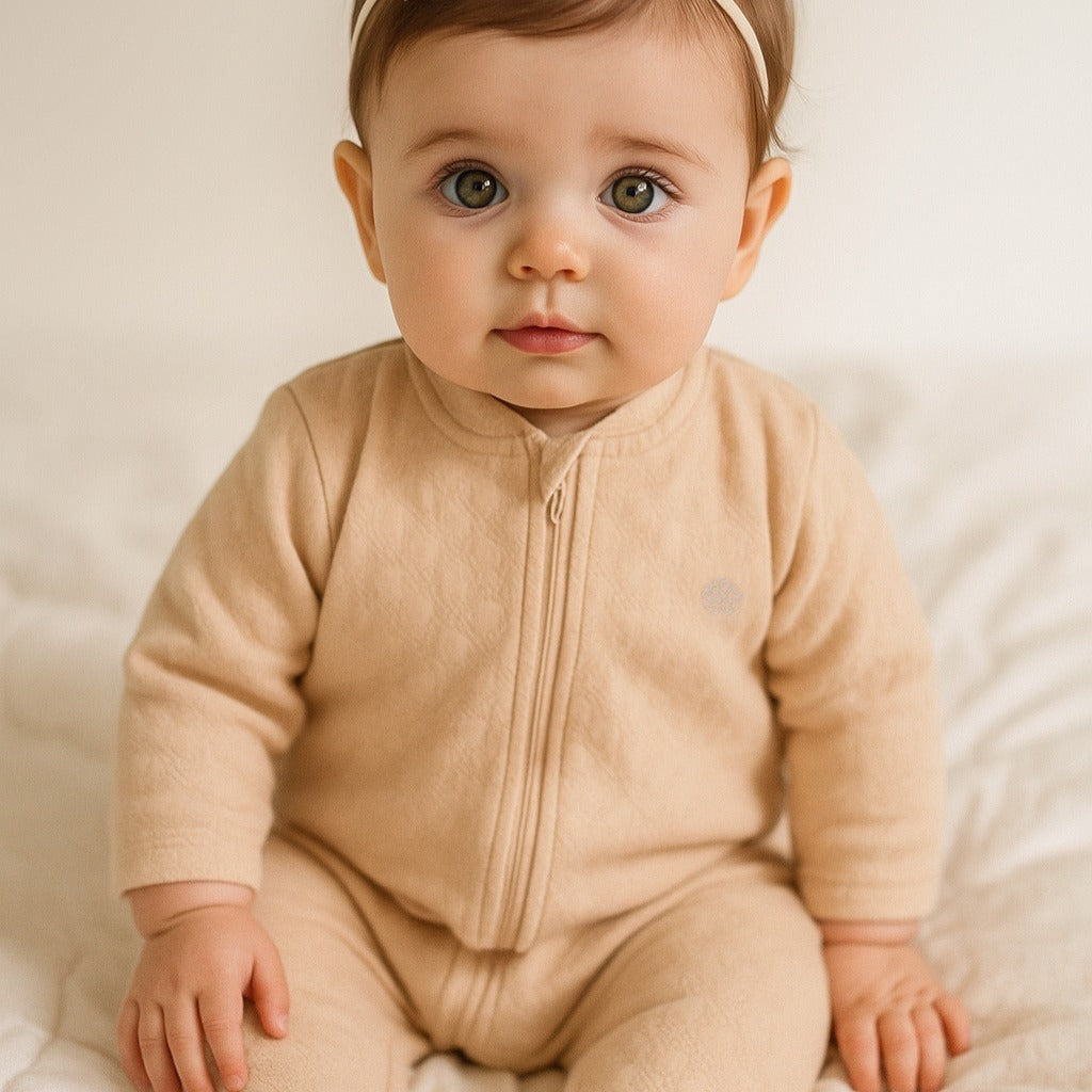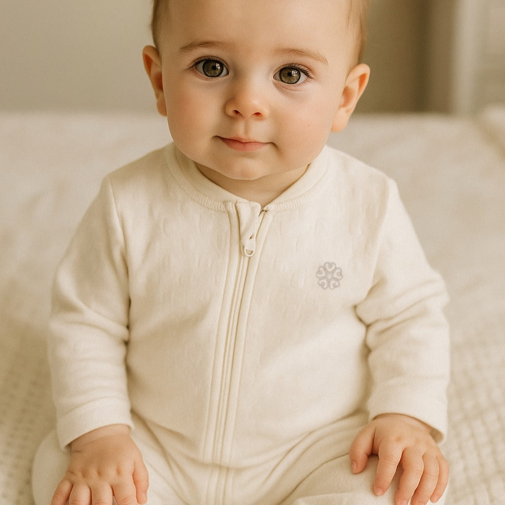 Tu bebé pasará un invierno abrigado y con estilo con nuestro Enterizo Invernal OI25! Confeccionado con algodón jacquard suave, este enterizo es perfecto para mantener a su bebé abrigado. Además, cuenta con mejoras en el cuello con respecto de la versión anterior OI24. Tiene doble cierre de cuello a pies para un cambiado de ropa fácil y cubre cierre para mayor protección. ¡Un imprescindible de la temporada!