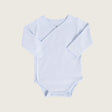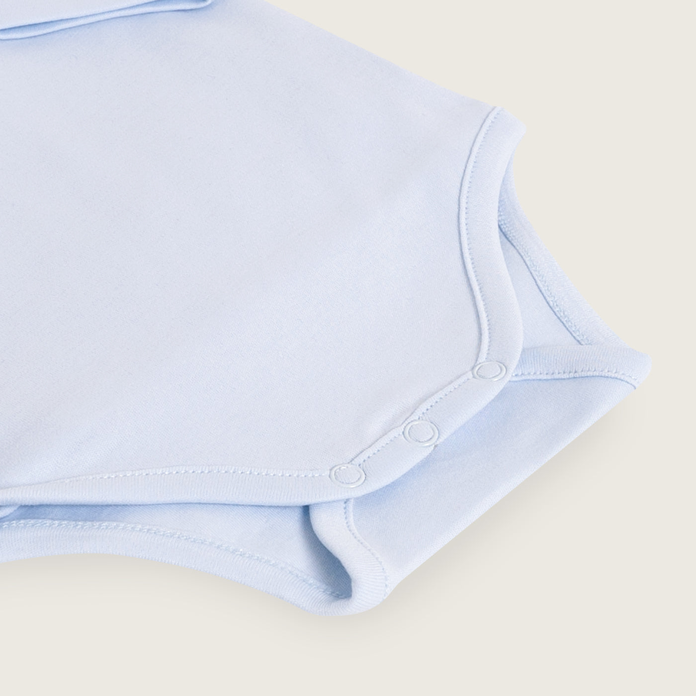 Este diseño de body Kimono se caracteriza por su apertutra frontal cruzada que se abre por la parte delantera y se cruza en el pecho del bebé. Esta apertura total que va desde el cuello hasta el tiro, facilita vestir al bebé sin tener que pasar la prenda por encima de su cabeza, facilita también el cambiado constante del pañal del bebé.