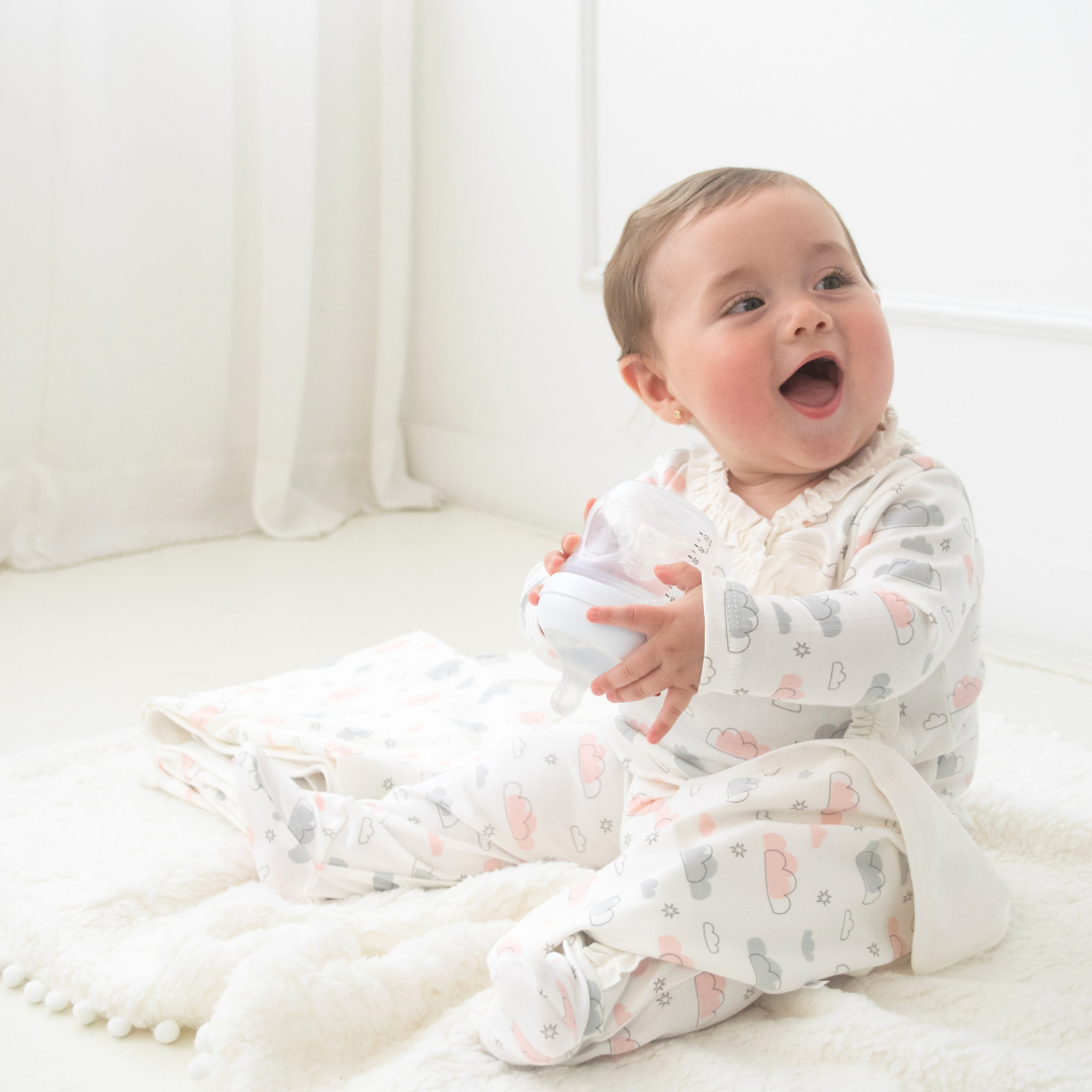 El Enterizo de nubes rosa es la combinación perfecta de comodidad y estilo. Hecho con algodón Pima certificado, garantiza una suavidad inigualable para la piel de tu bebé. Además, su tierno estampado de nubes lo convierte en una opción linda y divertida. Disfruta de la máxima calidad en una prenda única