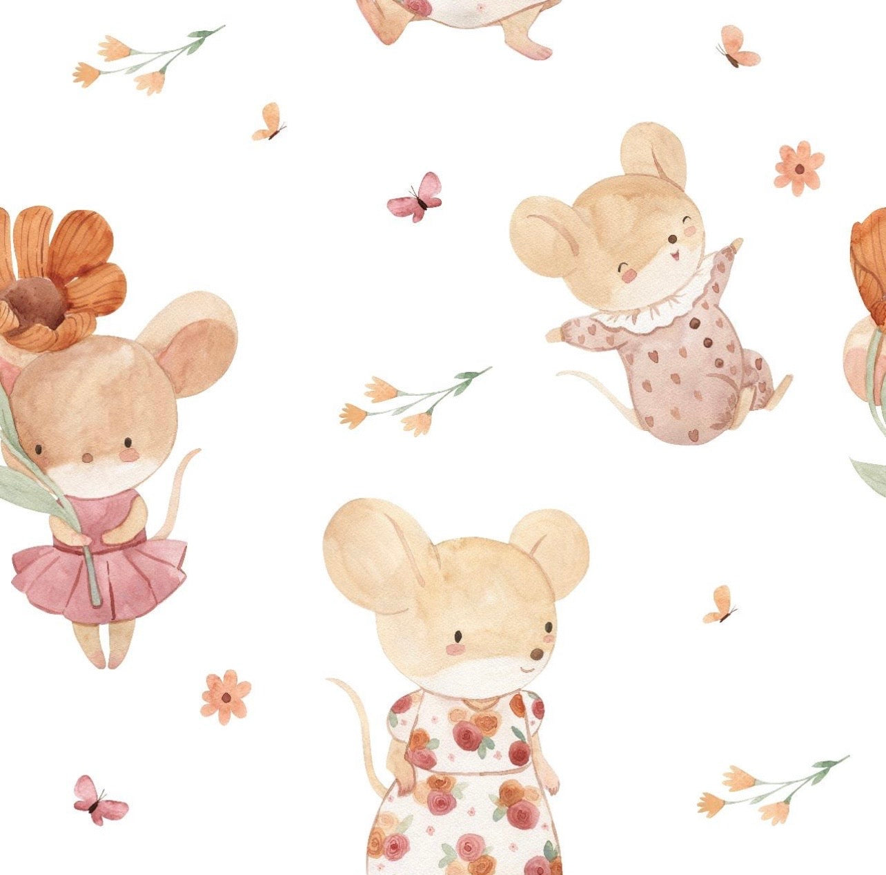 • Estampado de ratoncitas y flores.