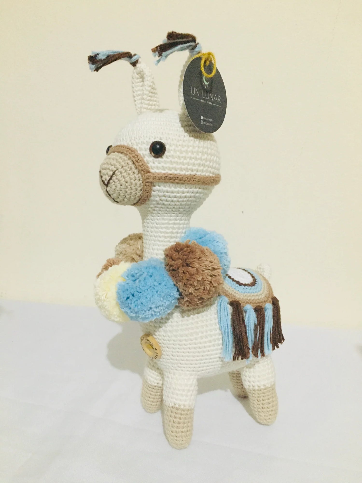 Muñeco de apego confeccionado manualmente con hilo de algodón antialérgico. La llamita presenta una distintiva corona de flores en la cabeza que proporciona estimulación visual y táctil. Su construcción artesanal asegura costuras resistentes. Recomendado desde el nacimiento, favorece el desarrollo emocional y proporciona confort durante momentos de descanso. Una opción confiable para padres que priorizan la calidad y seguridad.