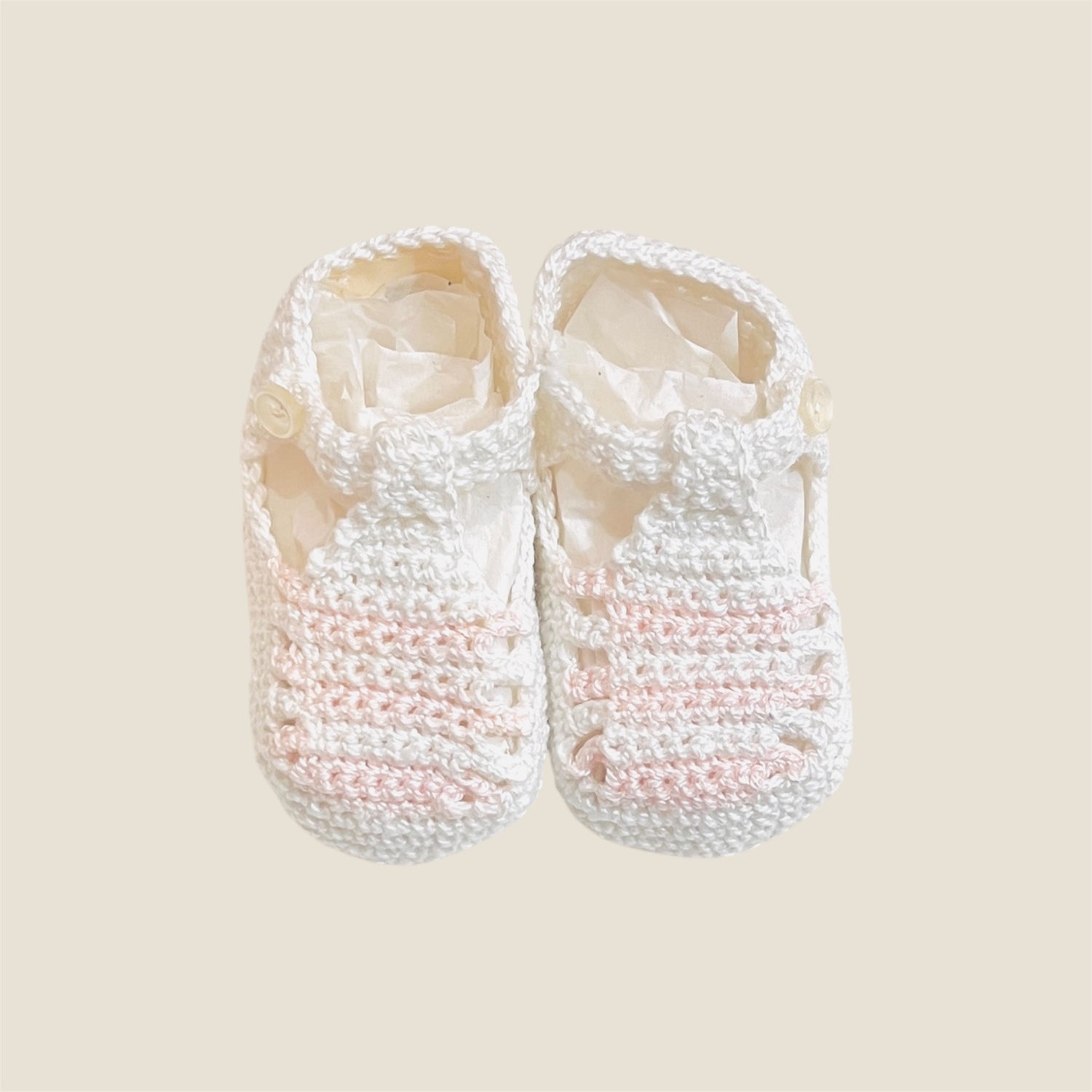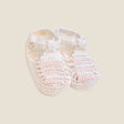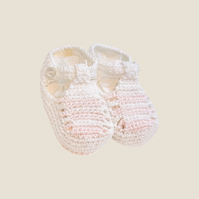 Patuco zapatito tejido en hilo de algodón egipcio de primera calidad, diseñado especialmente para recién nacidos. Este delicado accesorio combina suavidad extrema con durabilidad, proporcionando comodidad durante las primeras semanas de vida. Confeccionado a mano con atención al detalle.